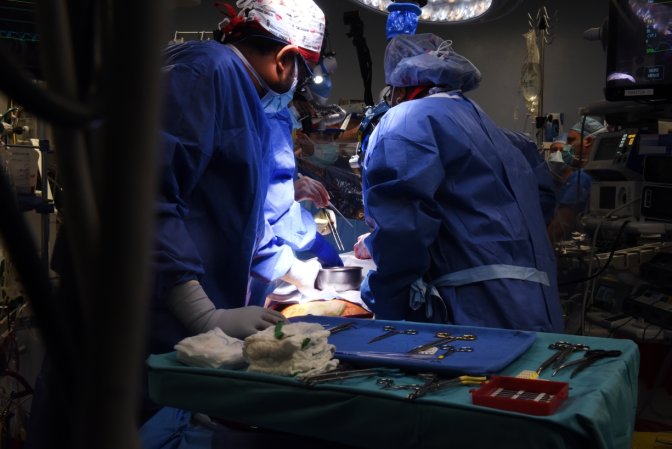 Les chirurgiens opèrent Bennett, patient cité dans notre article, dans la procédure du 7 janvier 2023 UNIVERSITÉ DU MARYLAND, image source eGenesis