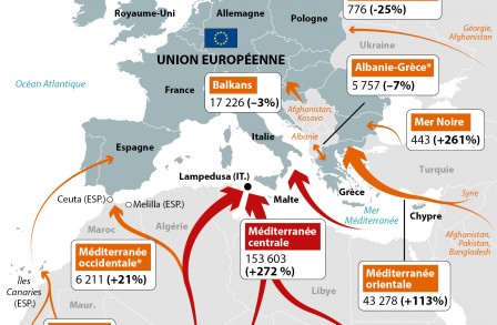 Ce flux migratoire est aussi bien un cycle vécu depuis l’ancêtre africaine de l’humanité « Lucie », qu’une amplification, en détresse, du passage vers des contrées plus clémentes, voire respectueuses de la vie par l’offre, qu’elles recèlent, de richesses dont la nourriture. L’attractivité de l’Europe est plus géographique, comme pour les sud-américains se déplaçant au nord via le Mexique.